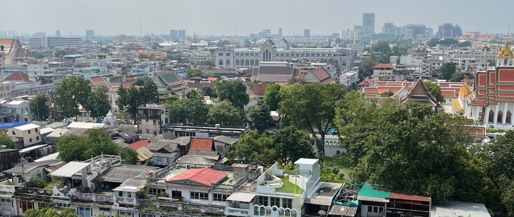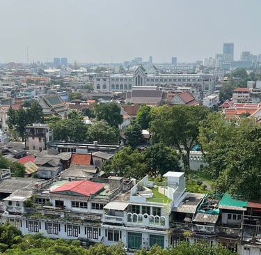 No templo do Monte Dourado (Wat Saket), sendo este o templo próximo do local da foto acima, vimos do lado deste templo, um pequeno parque de diversões, com uma pequena roda gigante e várias barraquinhas de comida de rua, para nós foi um belo resumo do bangkok é, um centro com muitas possibilidades de conhecimentos do budismo, muita agitação em qualquer momento do dia.