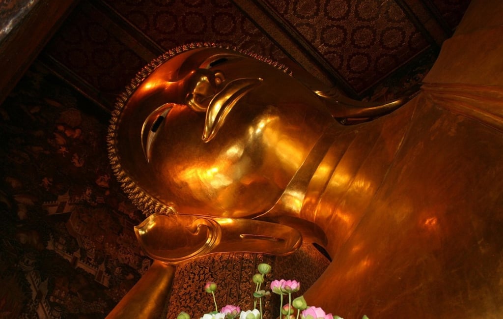 Este fica muito próximo do palácio imperial, cerca de 10 min a pé de distância. Nele, há o maior buda de ouro na posição reclinada do mundo, são 46 m de comprimentos e 15 m de altura, pesa por volta de 5,5 toneladas, mas não inteiramente de ouro maciço. Sua importância não é somente por sua beleza, mas historicamente foi um dos maiores símbolos da região, pois feito antes mesmo da cidade de Bangkok existir, mais precisamente era o símbolo da primeira universidade pública da Tailândia, onde é considerado o berço da massagem tailandesa tradicional e nos pés da estátua, há 108 imagens de Buda, chamadas de Lakshanas, elas são incrustadas com madrepérola, no qual foram feitos com estilos de arte chinês e tailandês. Foi registrado como parte da herança mundial na UNESCO.