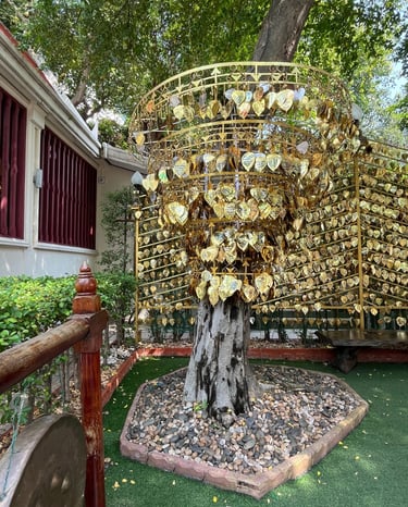 Na Tailândia o uso do ouro é totalmente diferente do que estamos acostumados, pois, aqui no ocidente, ouro é algo que foi feito para guardar num banco (bilionários devem fazer isso, assim como reservas nacionais de países); folhear algum item para valoriza-lo como uma joia e no máximo colocar em alguma comida, o que já não é algo comum para o Brasileiro. Lá, o uso do ouro além para decoração, é muito voltado para ser dado como oferenda.