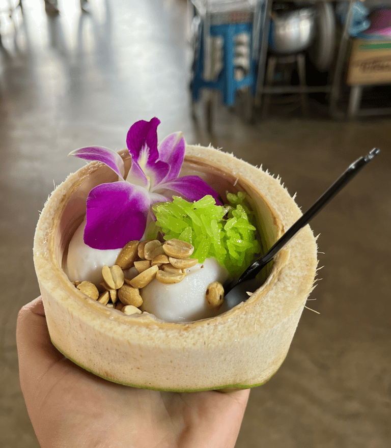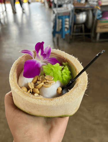 Mango Sticy Rice, este é uma sobremesa também muito comum, pois é uma porção de arroz, com leite de coco e manga cortada, esta simples combinação é perfeita para um clima tropical. O preço varia entre 100 a 180 BAHT;