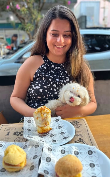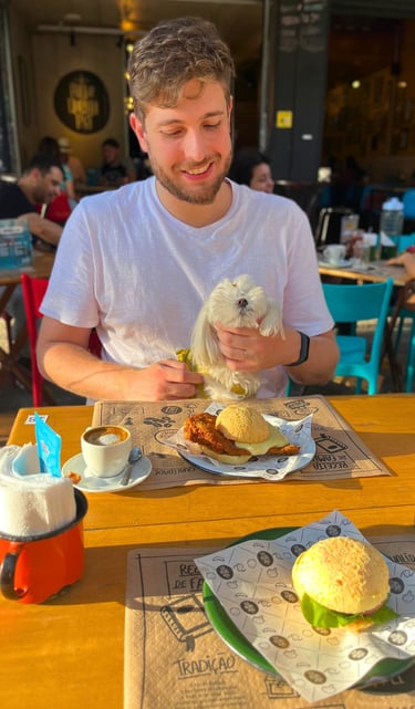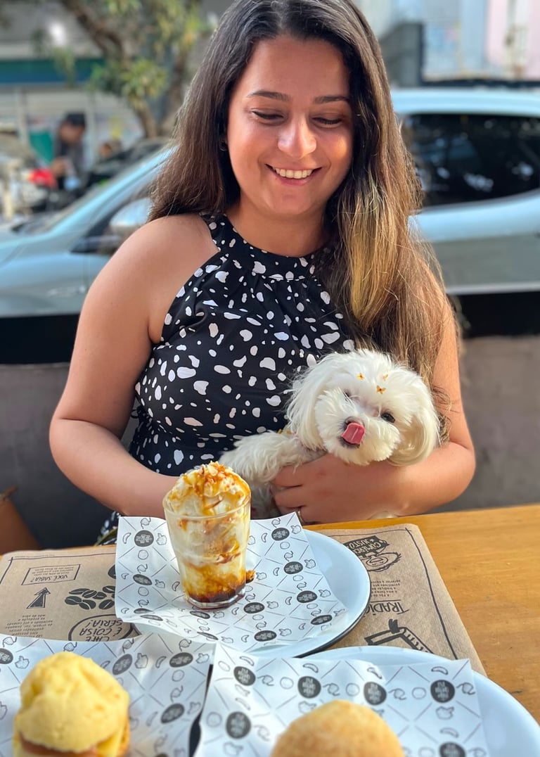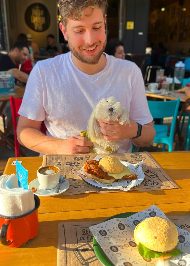 O local possui mesas externas o que permite poder estar junto do seu pet! A nossa cachorrinha (Flor) ficou com vontade, mas não deixamos ela comer.