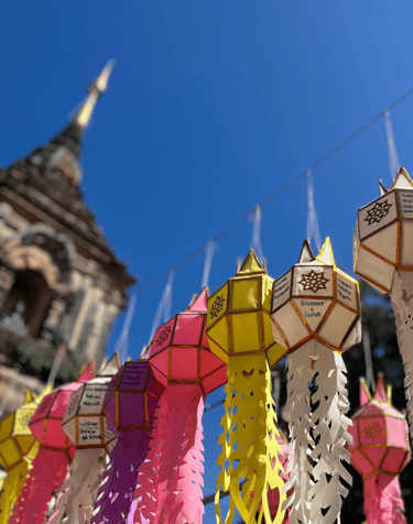 Chiang Mai é cidade mundialmente visitada por conta do festival das lanternas, então a cidade sempre se prepara para receber turistas de todas as partes do mundo, Chiang Mai fica toda decorada, principalmente nos templos, onde a principal decoração são as lanternas coloridas e você poderá comprar, fazer seus pedidos e logo em seguida pendurá-las.