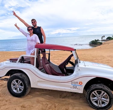 O passeio de buggy poderá ser um pouco mais pessoal, já que poderá escolher alguma opção de restaurante informado pelo o motorista, assim como o quanto tempo poderá ficar em cada local, isso foi muito bom para nós pois, enquanto estávamos almoçando começou a concentrar nuvens de chuva muito escuras, então optamos por ir embora e voltarmos mais cedo para evitar a chuva (O que no caso não adiantou muito, já que no meio do caminho choveu).